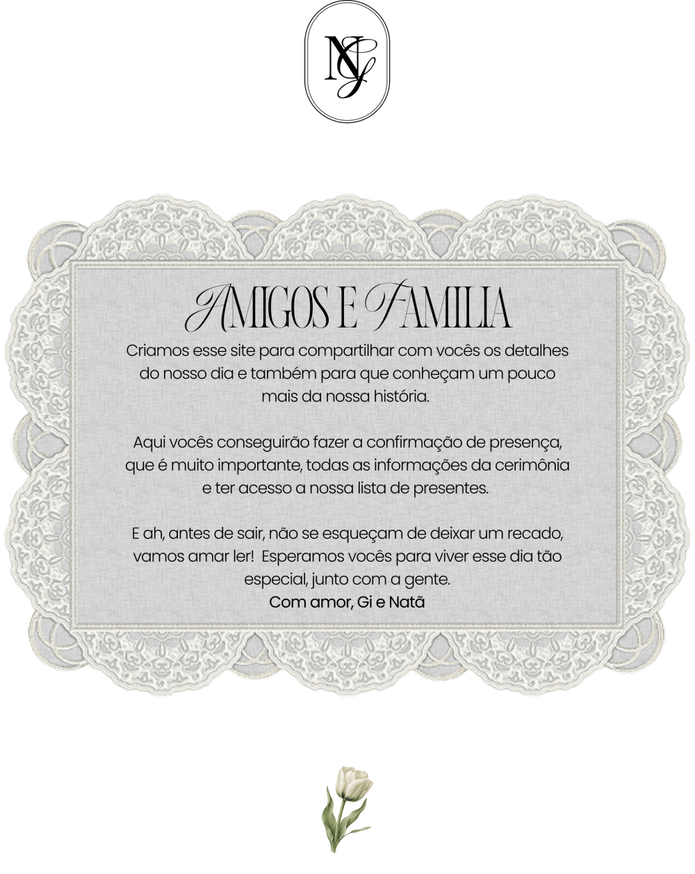 Gih, como eu estou feliz em ver você construindo sua família, é um prazer enorme acompanhar cada detalhe dessa sua nova trajetória, oro e acredito que Cristo tem o melhor para vocês, que a família de vocês sejam firmados na rocha de Cristo e que ele seja o centro de tudo! eu amo sua vida gih!🥹🤍